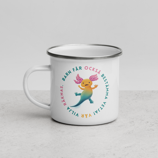 Emaljmugg för hemmet eller utflykten "Barn får också bestämma"
