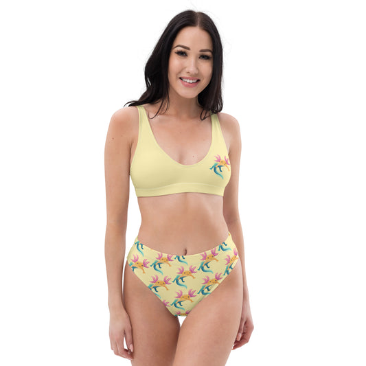 Bikini med hög midja i återvunnet material. Ljusgul med axolotlen Axis tryck. Storlek XS-3XL