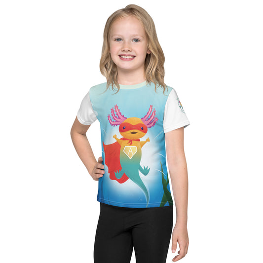 "SuperAxis" T-shirt för barn 2-8år, med helt tryck på framsidan samt rundad hals, vit rygg och ärm.