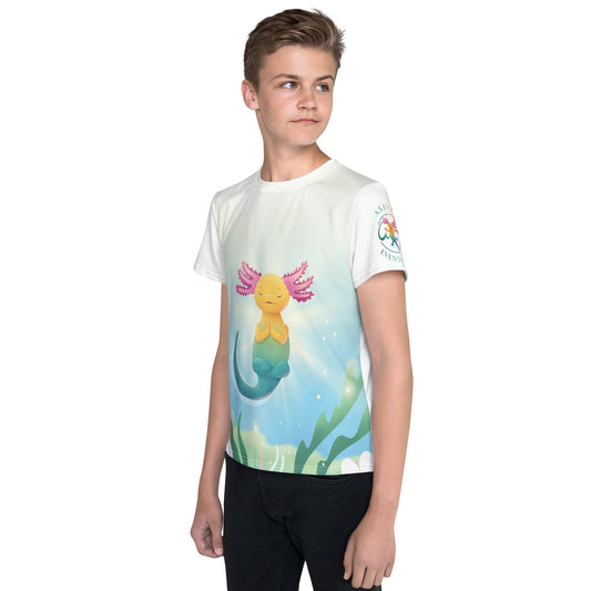 "Axis blir lugn" T-shirt för barn/ungdom 8-18år, med helt tryck på framsidan samt rundad hals, vit rygg och ärm.